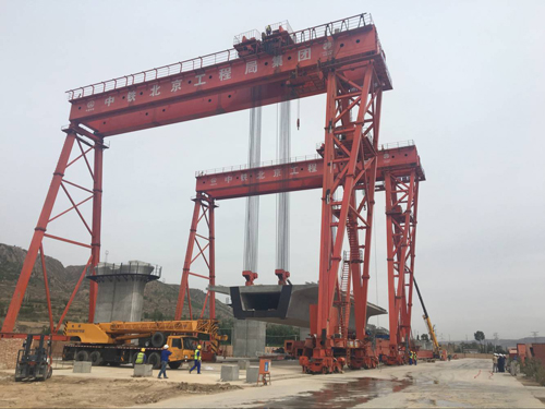 2017年05月24日,甘肅航空港450t輪軌提完成第一片梁起吊。